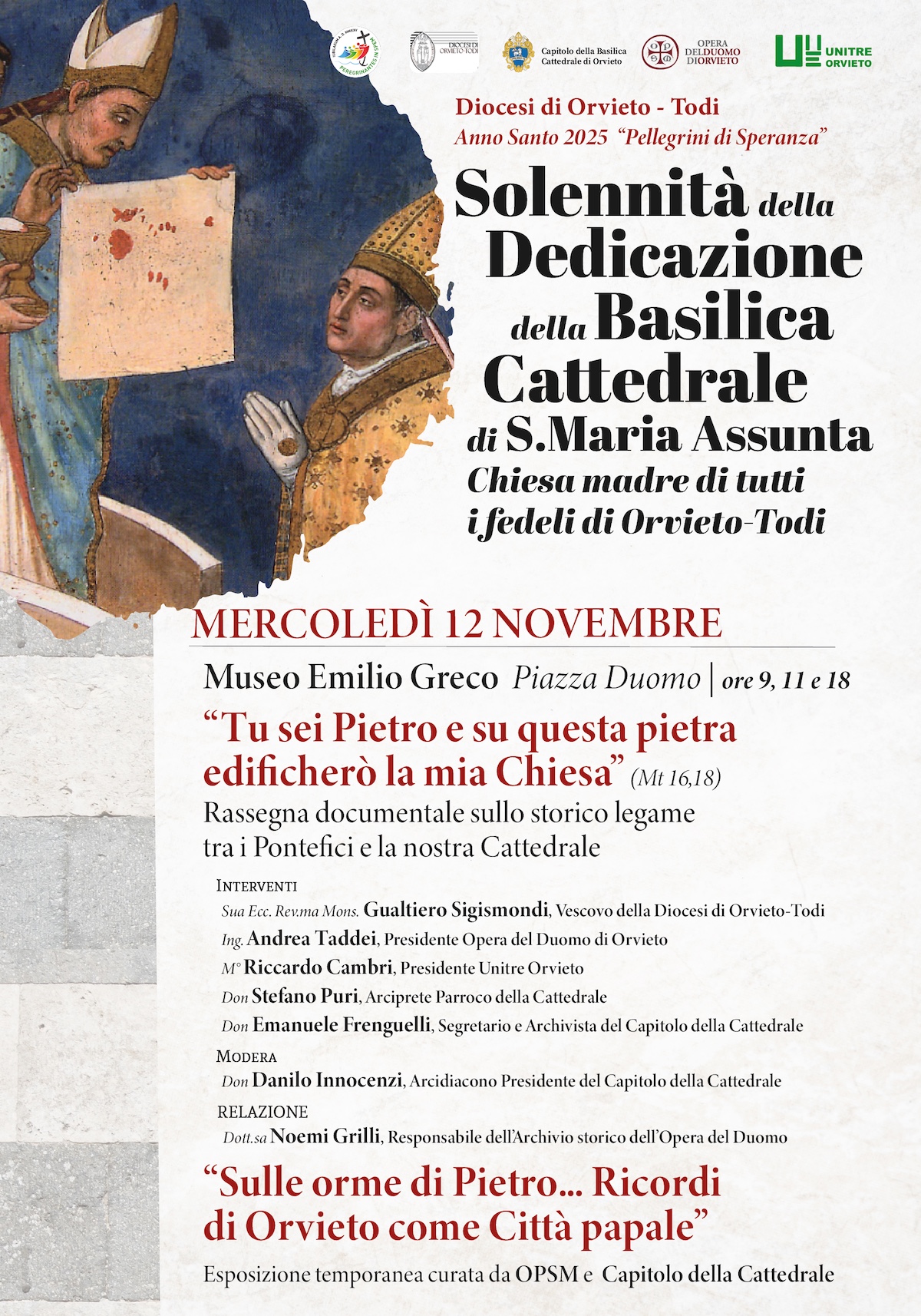 Durante la giornata sarà possibile apprezzare l’esposizione temporanea “Sulle orme di Pietro… Ricordi di Orvieto come Città papale”, curata dall’Opera del Duomo e dal Capitolo della Cattedrale, che offrirà un viaggio nella memoria storica e spirituale di Orvieto come antica sede papale.